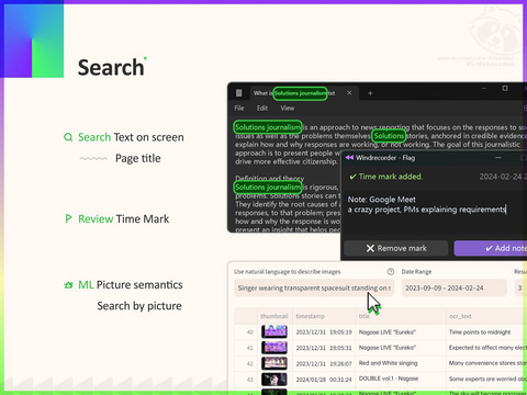 PCの画面上に表示されたさまざまな情報を巻き戻して確認したり、検索したりできるようにするオープンソースアプリ「Windrecorder」がGitHubにて公開されている。現時点で言語は英語、日本語、中国語(簡体字)をサポートしている。