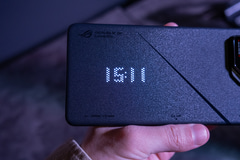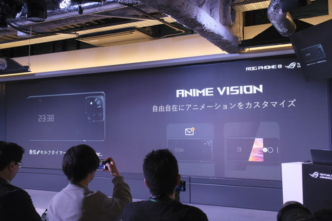 筐体デザインについては、背面に備わるAniMe VisionやAuraライトが大きな特徴。ROG Phone 8 Pro/Pro Editionが搭載するAniMe Visionは、341個のミニLEDによるモノクロディスプレイのようなもので、時計や天気、バッテリ残量や通知、写真撮影時のカウントダウンなど、さまざまな情報をアニメーション表示できる。