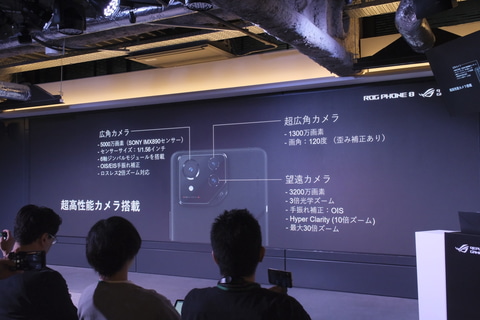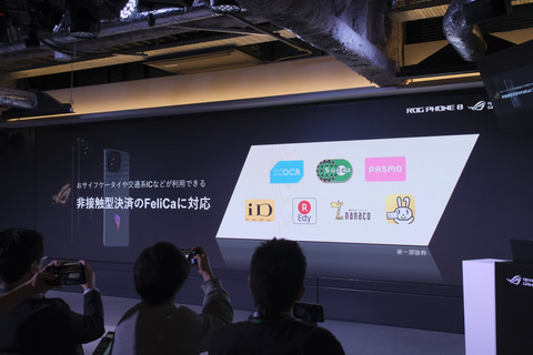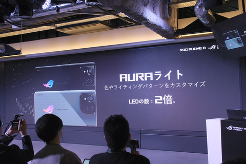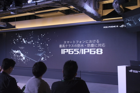 一方、ROG Phone 8が搭載するAuraライトは、従来モデルにも採用されていたROGロゴのイルミネーションだが、LEDの数が2倍になり、より滑らかな発光が可能となっている。そのほか各モデル共通で、約8.9mmにスリム化を図るとともに、新たにIP65/IP68の防水防塵やFeliCa/おサイフケータイにも対応している。