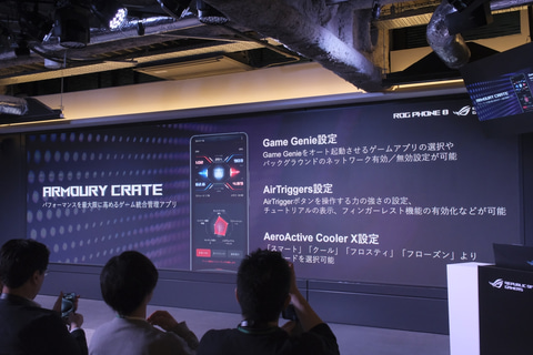 ソフトウェア面では、ゲーマー向けの統合管理アプリArmoury Crateや、アシストツール群のGame Genieを搭載。感圧式タッチセンサーを使用したトリガーボタンのAirTriggersや、ゲーム内のテキストをOCRしてキャプチャできるAI Grabberなどを用意する。UIについては、Zenfone向けに提供しているZen UIをベースとしたROG UIを採用となり、オンデバイスAIでの画像検索機能なども搭載する。