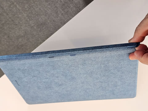 その後展示会場にいって、実際に触ってみると、その出来は想像以上によかった。Surface Proのユーザーであればよくご存じだと思うが、Surface Proのキーボードは、タブレット部の下部に用意されている端子に、キーボード側の端子を挿入してマグネットで吸着して固定されるようになっている。