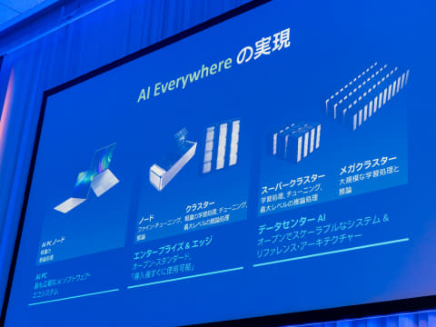 これを踏まえ、今回打ち出している「AI Everywhere」については「すべての開発者やユーザーが安心して安全に運用できるAIテクノロジを提供できること」、「一企業や一アーキテクチャに束縛されることなく、豊富な選択肢の中でより自由に開発できる環境を提供していくこと」と説明した。