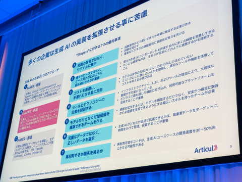 また、実際にはエキスパートレベルのモデルを構築/実装して終わりではなく、コストの計算や効果の検証、運用していく中で生成AIが大きなアドバンテージをもたらしてくれるのはいつなのか、既存のユースケースも引き続き使えるところはどこなのかなどさまざまな条件も組み合わせて考える必要があると話した。