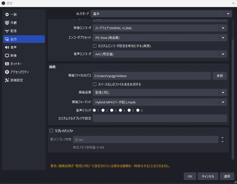 この中でベータ機能として「Hybrid MP4」と呼ばれる新しい出力形式がサポートされた。Hybrid MP4では高信頼性と互換性のある出力を実現しており、録画中にOBSやOSがクラッシュするなどしても、クラッシュ時点までの動画データは保存され、そのまま再生もできる。