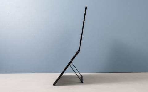 ヒンジは360度無段階で回転するため、折り返してテントのように立てることもでき、1画面としての使用または画面を背面に共有するといった使い方が可能。75mmピッチのVESAマウンタもサポートする。背面には120度まで無段階調整できるキックスタンドを備える。