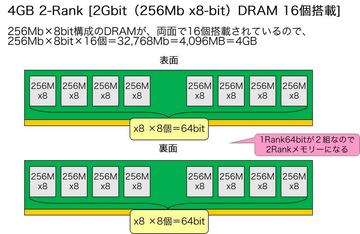 これまで用いられていたRDIMM(Registered DIMM)などでは、パフォーマンスと容量の確保のため、メモリランクが2ランクとなっていることが多いという。メモリランクはモジュール上のDRAMをまとめた動作単位だが、複数のランクがある場合、同時にアクセスすることができないため、ボトルネックとなってしまっていた。