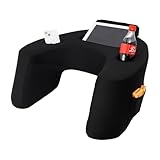 ソファなどに座った状態で、太ももの上に載せられ、体にフィットする扇形デザインのクッション。肘を置くアームレストの用や役割を持ち、動画視聴/ゲーム/PC作業が作業しやすい姿勢を保て、“一歩も動かずに怠惰(ラク)にダラダラできる”という。