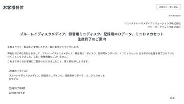 光ディスクに関しては大手メーカーの撤退が続いており、直近ではソニーが2月をもってBlu-ray Dicsメディアの生産を終了すると明らかにしている。
