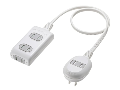 プラグ部分にコンセント差込口を1基搭載し、壁のコンセントを無駄なく活用できる製品。差込口にはホコリ防止シャッターを備え、トラッキング火災のリスクを低減する。L型プラグには絶縁キャップも採用し、電気用品安全法技術基準に適合した安全性を確保する。