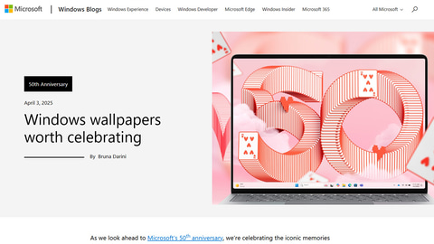 Microsoftは3日、同社が2025年で50周年を迎えるのにあわせ、これまでの製品やソフトウェアなどをモチーフとした特別壁紙の配布を開始した。