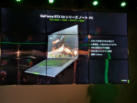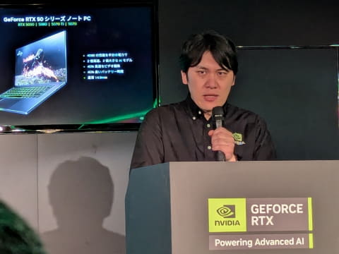 NVIDIAは4月5日、秋葉原のe-sports SQUARE AKIHABARAにて、先日発表されたノートPC向けGPU「GeForce RTX 50」シリーズの新機能やパフォーマンスなどを紹介するメディア向けイベント「GeForce RTX 50シリーズ ノートPC メディア説明会&デモショーケース」を開催した。その後は同じ会場にて、一般入場客を招いてのイベント「NVIDIA Gamer Day」も続けて行なわれた。