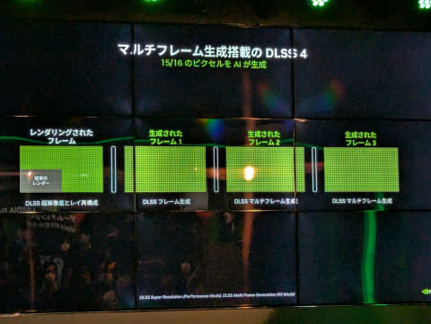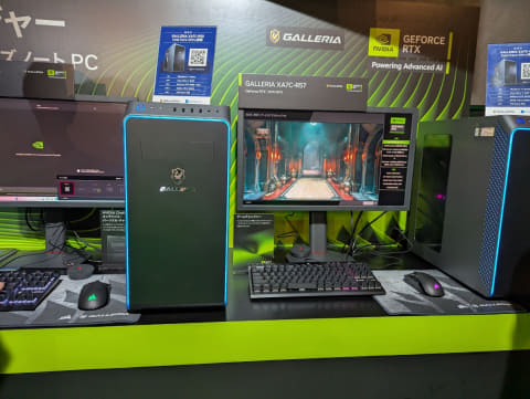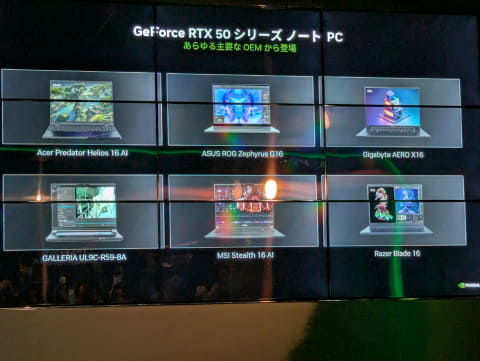 会場にはサードウェーブ(GALLERIA)、MSI(Vector/Titan)、GIGABYTE(AORUS)、ASUS(ROG)、Acer(Predator)のゲーミングブランドノートPCにGeForce RTX 50シリーズを搭載した新製品を展示、新機能である「DLSS 4」を生かしたゲームプレイや、AIを活用した高品質な映像編集や配信時のビデオエフェクト機能などのデモを行なった。