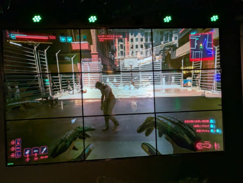 黒木氏はゲーム「Cyberpunk 2077」をプレイして、そのパフォーマンスを体感するデモに挑戦し、NPCとのボクシング対決に大興奮。ところがゲーム画面に表示されるフレームレートは70fps前後と、あまり高パフォーマンスが発揮されておらず、対決にも負けてしまい、不完全燃焼のまま、次のデモに進行することとなった。