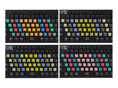 タイピングの習熟度にあわせてシールを貼り替えることで段階的にレベルアップできる。文字キーは原色に近い判りやすい配色で、色の判別が苦手な人でも見分けやすいカラーバランスに調整されている。また、「目指せ打鍵王!シール」も付属しており、指や爪に貼ることで、どの指でどの色のキーを押すかが一目瞭然になる。