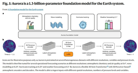 そこで、Microsoftらは、100万時間を超えるさまざまな地球物理学的データに基づいてトレーニングされた大規模AI基礎モデルの「Aurora」を開発した。