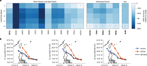 その結果、Auroraは熱帯低気圧の進路予測において、世界の複数の主要な予報センターのシステムを上回る性能を示し、実際に2023年7月に発生した台風“ドクスリ”の進路を正確に予測できたという。