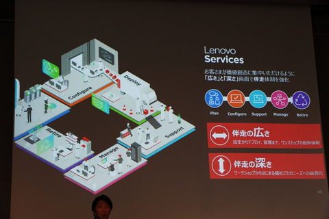 ニーズにあわせた製品投入の面では、テレワークやフリーアドレスの拡大により、国内における昨今のPC利用環境が変化していることに言及。機動性が重視される現状に対し、1kg切りの軽量ThinkPadや、eSIM+通信サービスで常時接続を実現する「Lenovo ConnectIN」対応製品、IT部門の負担を軽減する各種サービスなどを展開していく。