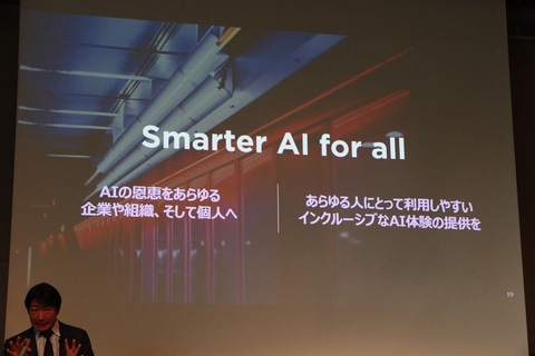 その上で、同社のミッションである「Smarter technology for all」にかけて、今年度は「Smarter AI for all」を掲げ、AIの利活用に対し、メーカーとしてデバイスやサービスを準備し、使いやすい状態でユーザーに提供することを目指すとした。