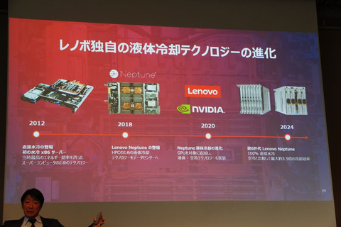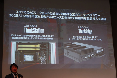 具体的な取り組みとしては、Copilot+ PC対応製品の拡充、ワークステーションやエッジ向け製品の継続的な展開、データセンター向けの液体冷却技術のNeptuneの改良、技術検証済みのAIソリューションを提供するLenovo AI Libraryなどを挙げた。