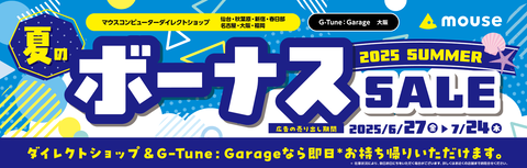 マウスコンピューターは、直販のマウスコンピューターダイレクトショップ、およびG-Tune:Garageにおいて、おすすめ製品を割引販売する「夏のボーナスSALE」を7月24日まで実施する。