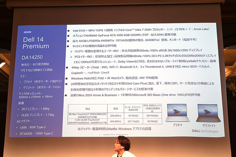 Dell 14 Premium(DA14250)は、14.5型ディスプレイを搭載したモデル。発売は6月26日で、出荷は7月中旬より。