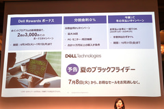 また、7月7日まではDell Rewardsというポイントプログラムで、2倍の3,000ポイントを提供中。さらに、分割金利0%、1%の手数料で今購入しても支払いを冬にずらせるキャンペーンなどを実施中だ。