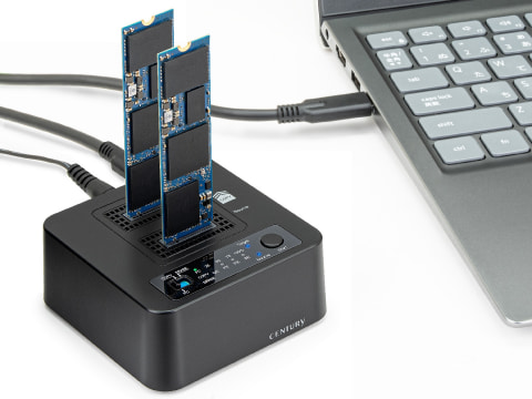 センチュリーは、M.2 NVMe SSDを簡単に複製/消去できる「裸族のお立ち台 NVMe クローン&イレーサー(CROM2NU20GCE)」を7月下旬に発売する。出荷開始は7月24日予定で、価格1万8,700円。