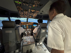 また、他機と急接近した場合には空中衝突防止装置(TCAS)を作動させて回避したり、コックピット室内に煙を出して、火災が発生した状況を模擬的に作ったりすることも可能だ。