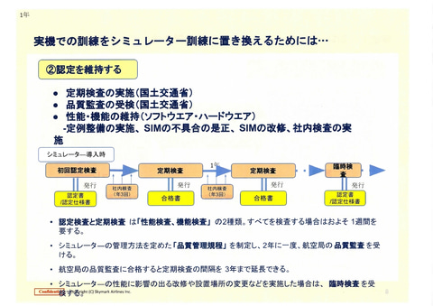 「パイロットの訓練に使用するために必要な認定であり、その点で、テーマパークのアトラクションや、個人用フライトシミュレータとは異なる。これは、実機とシミュレータの性能が同じであることを証明する認定検査であり、1年ごとに定期検査も受けている」という。
