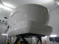 フライトシミュレーターは、実際の航空機の操縦室、操縦装置、装備品、操縦室内の計器類など、コックピット内をすべて再現した模擬飛行装置であり、今回、スカイマークが導入したフルフライトシミュレーター(以下FFS)は、6軸方向に動き、揺れを感じるモーション装置や、14個のスピーカーによるエンジン音などのサウンド効果、CGにより外界の景色を投影する映像装置などを搭載しており、加速度を感じながら実際の航空機を操縦している感覚で飛行訓練を行なえる。