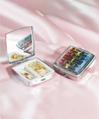 一方の「富岳」CPUコンパクトミラーピルケースは、富岳のCPUが「虹色に輝いてかわいい」という職員のひと言をきっかけに商品化したケース。天面には虹色にきらめくCPUの回路パターンがプリントされている。内部は2部屋に分かれており、ピルケースやアクセサリ入れとして利用できる。