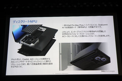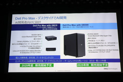 一方、今後のロードマップとしては、NVIDIA GB10 Grace Blackwell Super Chipを採用したミニPC「Dell Pro Max with GB10」を今夏に投入であること、そして上位の「NVIDIA GB300 Grace Blackwell Ultra Super Chip」を搭載した「Dell Pro Max with GB300」を秋に投入すること、さらに、QualcommのディスクリートNPUである「AI-100」を年末に投入することを明らかにした。