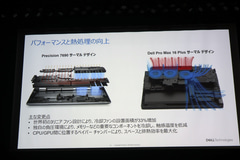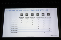なお、Dell Pro Max以外のラインナップ(DellおよびDell Pro)では、最高スペック順に並べるとほとんどがベースモデル(無印)→Plus→Premiumの順番となっているが、Dell Pro Maxではベースモデル→Premium→Plusという順番になる。これは、Premiumでは性能のみならずデザインやユーザビリティといったバランスも重視した位置づけであるためだ。最高性能のCPU/GPUはPlusでしか選択できないことになる。