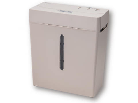 NSE-HS01は、A4縦の紙を約3秒で裁断できるシュレッダー。裁断形状は5×37mmのクロスカット。A4縦の用紙を裁断する時間について、平均的なシュレッダーでは約7秒だが本製品は約3秒のため、処理時間を大幅に削減できるとしている。