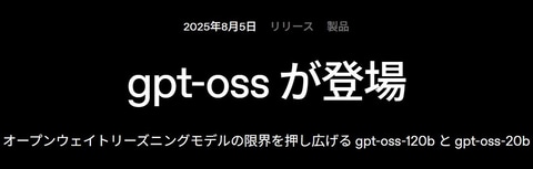 OpenAIは、ローカルで実行可能な言語モデル「gpt-oss」シリーズを発表した。117B(1,170億)のパラメータを持つLLM「gpt-oss-120b」と21B(210億)のパラメータを持つSLM「gpt-oss-20b」の2種がAIモデル公開プラットフォームであるHugging Faceにて公開されている。