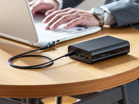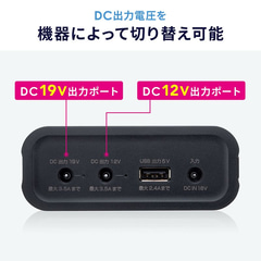 DC出力は12Vと19V、最大3.5Aに対応し、5V/2.4AのUSB Type-A出力も備える。容量は20,000mAh、残量が分かるLEDインジケータを装備する。