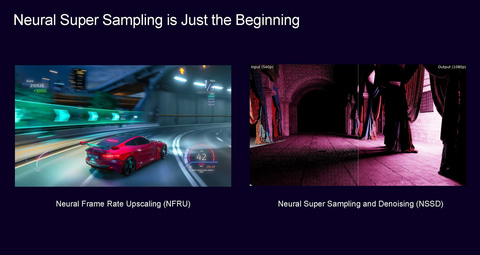こうしたAIアクセラレータを利用したスーパーサンプリングは、今後フレームレートのアップスケーリング(Neural Frame Rate Upscaling)、デノイズ機能を伴うスーパーサンプリング(NSSD: Neural Super Sampling Denoising)などに発展させていきたい意向で、今後も機能拡張が続けられる計画だ。