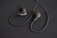 人間工学に基づいた独自のエルゴノミックサーフェスデザインにより、耳への圧迫感を軽減。イヤーハンガー形状の採用に加え、5mm径ドライバの採用などによる小型軽量化も図っており、長時間装着しても快適に使用できるとする。プロの大会などで行なわれることの多い、本機の上からイヤーマフを装着する使い方にも対応する。