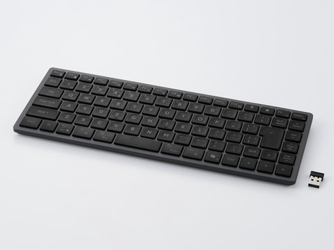 最薄部約9mmの薄型設計に加え、かな表記を省いたシンプルなキー印字を採用。2段階の角度調整ができるチルトスタンドも底面に装備する。