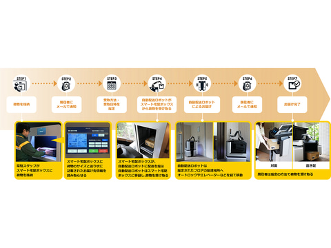 都市部や再開発エリアでは1,000戸を超える大規模マンションが増加し、受取ニーズも多様化しているとして、この実証実験を通じて大規模マンション特有環境下での配送ニーズや24時間稼働できる自動配送ロボットによる利便性を検証するとしている。