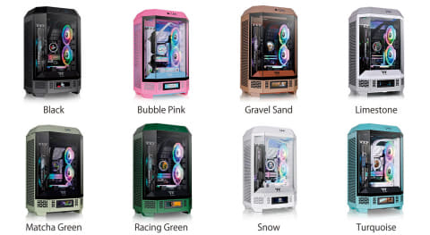 T300-R57X5060は、ThermaltakeのmicroATXケース「The Tower 300」を採用したゲーミングPC。本機ではケースカラーを選択可能。選択可能なカラーは、BlackやBubble Pink、Gravel Sand、Limestone、Matcha Green、Racing Green、Snow、Turquoiseの8色。