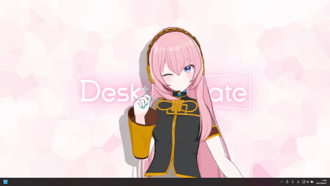 Desktop Mateは、PCデスクトップに3Dモデルのキャラクターを表示できるアプリ。デスクトップ上を動き回るほか、ウィンドウ上への着座やマウスカーソルへのリアクション、アラーム機能などが利用できる。
