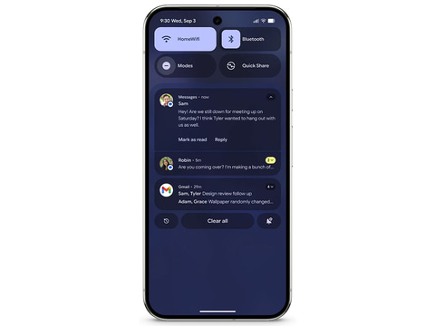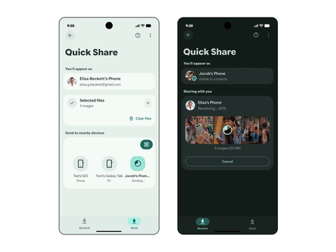 また、デバイス間でデータを共有する「Quick Share」はUIを刷新。送信する写真をプレビューしたり、受信したファイルをすぐ開けるようになったほか、進行状況を示すリアルタイムインジケータも新しいデザインとなった。