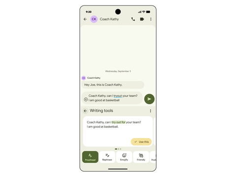 Pixel Dropの展開にあわせ、Androidデバイス全般に向けた新機能も発表。IMEのGboardではAIを使った「文章作成ツール」が利用可能となった。入力した文章の構成、表現の変更などがGbaord上で行なえる。処理はすべてオンデバイスで実行されるという。