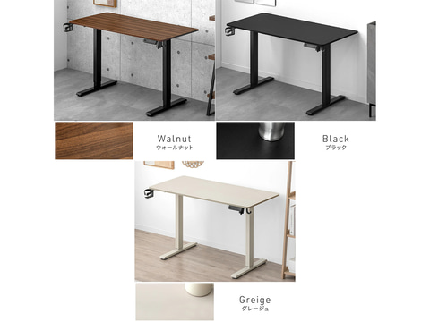 本体色は100cm/120cm/140cmの3タイプがブラック/ウォールナット/グレージュの3色から、L字タイプはブラック/グレージュの2色から選択可能だ。