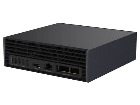 AI TOP ATOMは、ローカル環境でのAI処理に特化したAI開発者向けミニPC。2025年5月開催のCOMPUTEX TAIPEI 2025において、「DGX Spark」として発売が予告された製品の中の1つ。プロトタイピング、ファインチューニング、推論の実行といった推論型AIモデルによるAI処理に対応可能としている。ConnectX-7搭載。
