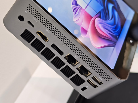 現時点ではモックアップの段階ではあるが、ミニPCの天板にディスプレイを統合した「A6X」がお披露目されていた。A6XのCPUはCore Ultraシリーズ2(Arrow Lake-H、225H/255H/285H)、SO-DIMM(DDR5)が2スロットで最大64GB、M2.2280が2スロットというスペックになっている。