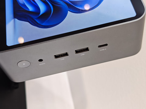 展示物はモックアップだったので、ディスプレイの解像度などは分からないが、ホームサーバー用途などであれば、低解像度でも問題ないだろう。もちろん、単体でPCとして使うこともできる。ただし、ディスプレイはフリップしないため、スタンドなどを用意して、ディスプレイを見やすい角度にして使う必要がある。