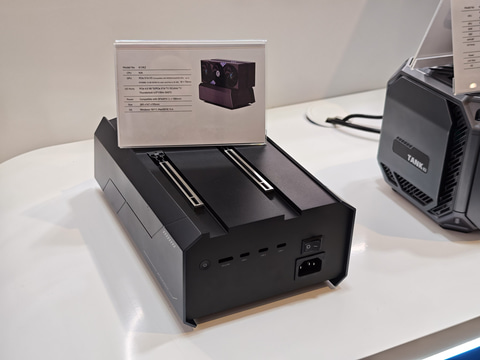 この中でACEMAGICは、同社の強みであるミニPCの新製品、さらには開発中のミニPCのモックアップ、そしてAMD、Intel、NVIDIAの外付けGPUを2枚挿せる外付けGPUボックスなどを展示して注目を集めた。