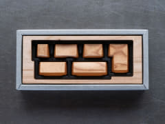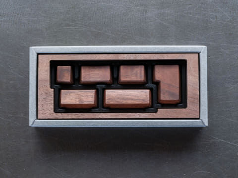 木製キートップセット for HHKB Studioは、一枚板から切り出したキートップのセット。素材はウォールナット、ブラックチェリー、オーク、メープルの4種類から選べる。